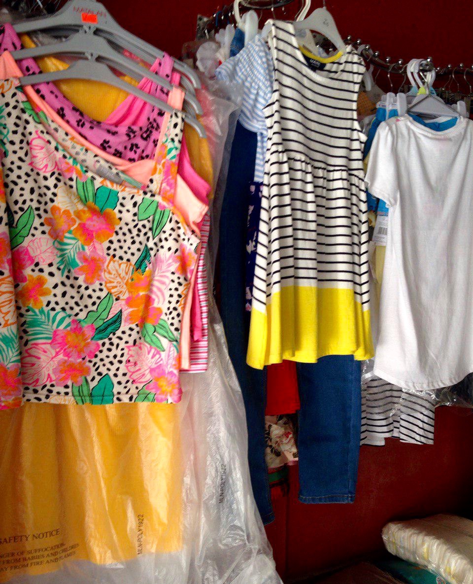Kids toddlers, babies and newborn items. Like clothing, school uniforms, etc. Also, men’s fashion and clothing. We also carry a section of cleaning supplies like soap, detergent and other housewares.